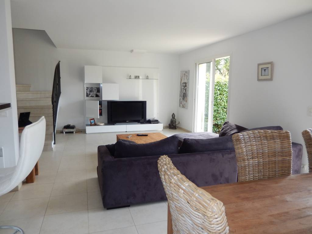 Belle maison discrètement jumelée de 117.65 m², sur 2 niveaux. Séjour avec cuisine US aménagée et équipée, WC invité. A l'étage , 3 chambres avec placard, Sdd + Sdb. Cave. Abri voiture. Terrain env 600 m². Loyer 1970 € incluant 80 € de forfait pour l'entretien du jardin et la fosse Honoraires 1176 + 352 pour EDL. Dépôt de garantie 1890 €. COUP DE COEUR ! Libre mi décembre 2025