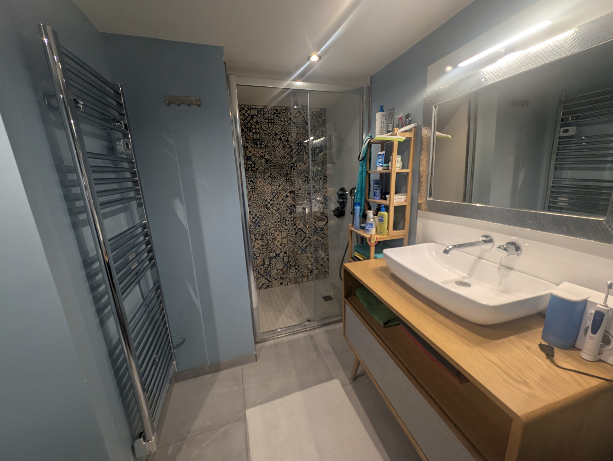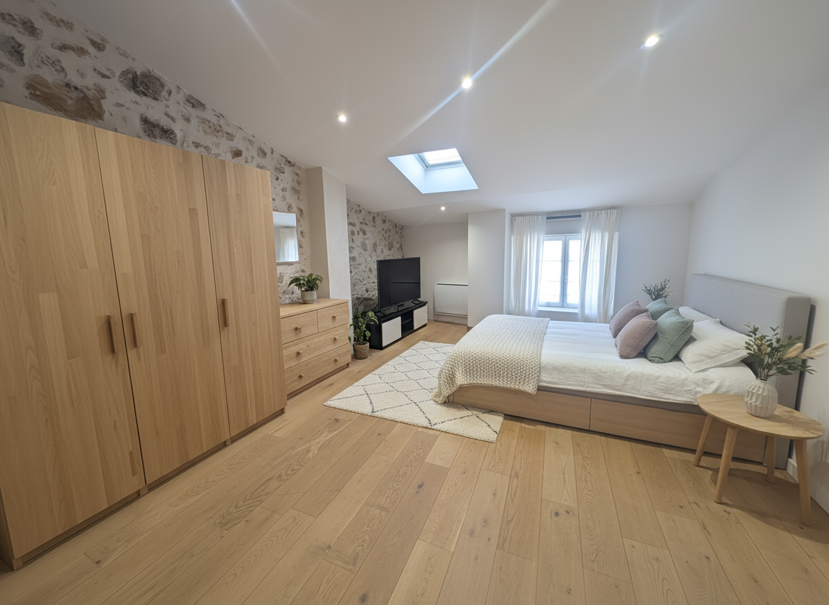Cette maison sur trois niveaux a bénéficié d'une trés belle rénovation. Lumineuse et au calme absolu. Quelques marches nous permettent d'accéder à la partie vie: salon avec poële à bois, une cuisine ouverte parfaitement équipée avec du matèriel de qualité. Un wc indépendant. Une chambre avec placard et salle d'eau. A l'étage du dessus, une seconde chambre avec sa salle d'eau, un second salon TV avec une belle mezzanine faisant office de chambre, une salle d'eau avec wc. Les combles sont accessibles pour faire office de stockage ou bien de chambre d'enfant. Un bien parfaitement situé avec accés voiture. Venez le découvrir maintenant!! FAIRE OFFRE Les informations sur les risques auxquels ce bien est exposé sont disponibles sur le site Géorisques : www.georisques.gouv.fr