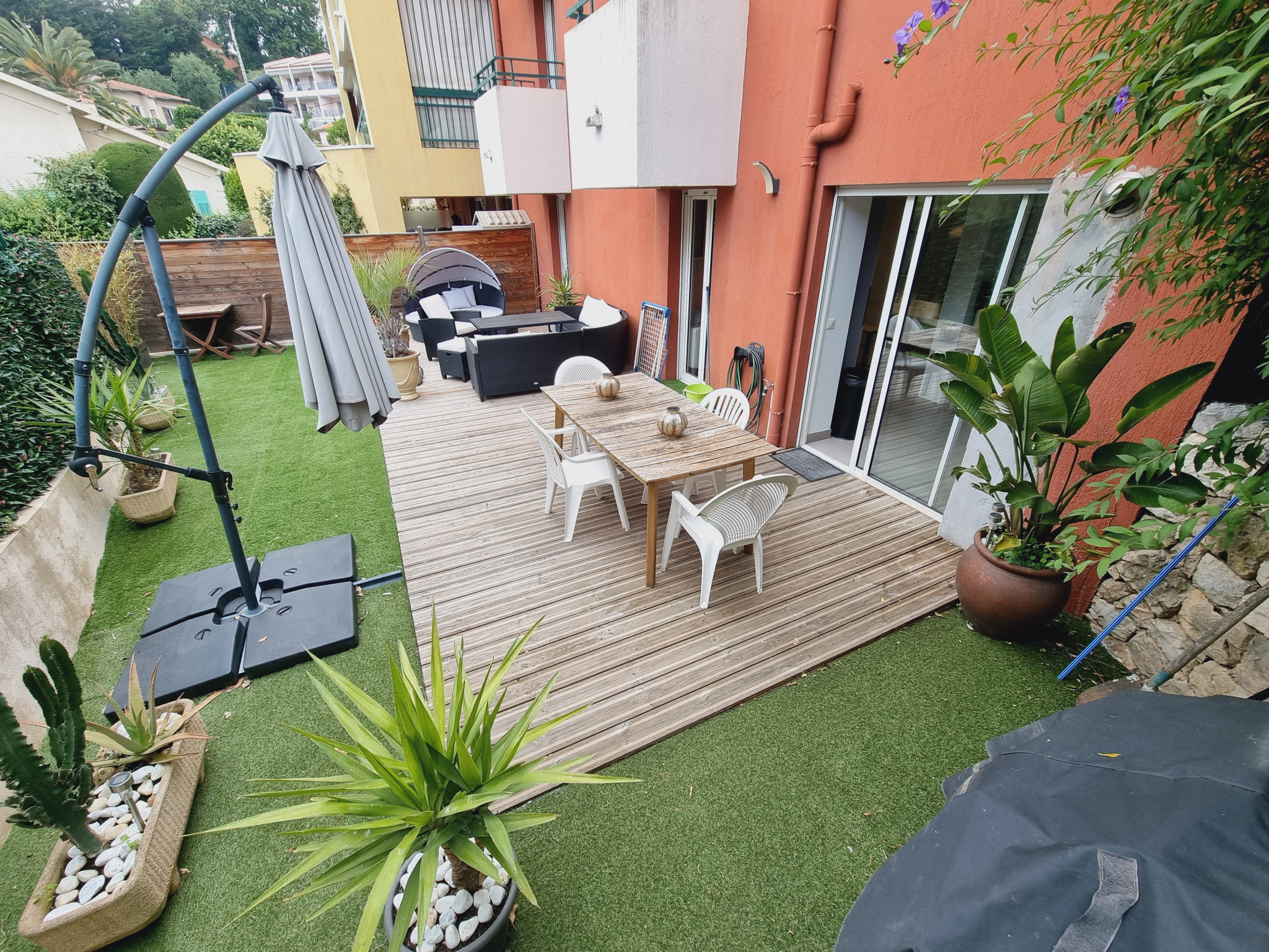 EXCLUSIVITE - VENCE - Dans une impasse au calme, résidence récente et proche de la ville, appartement en rez-de-jardin entièrement rénové en 2019, très lumineux et bénéficiant d'un agréable extérieur de 115m².