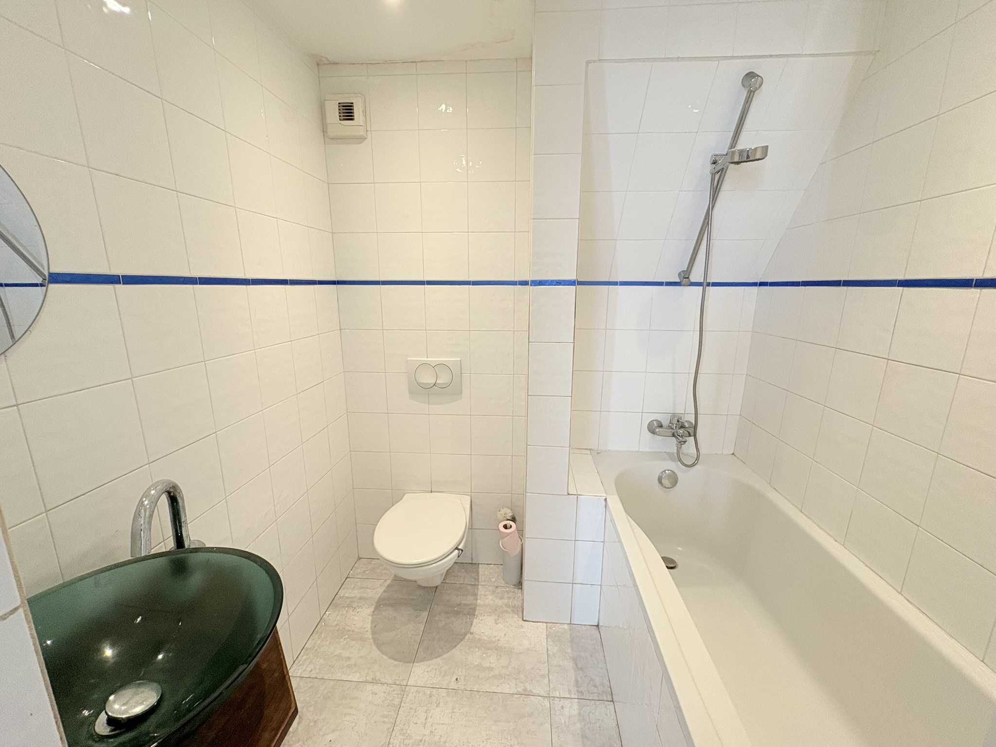 Au 2eme étage une chambre spacieuse avec une salle de bains et wc.