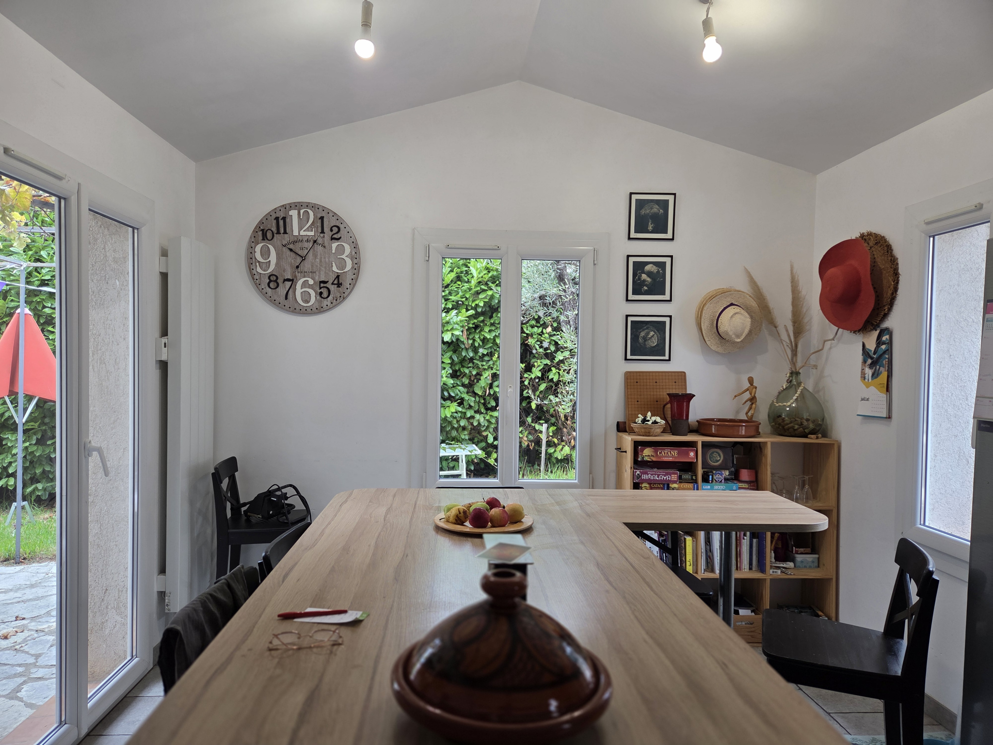La propriété se compose d’une entrée, un agréable salon avec cheminée, d’une grande cuisine équipée avec îlot central, ouverte sur une terrasse au sud/ouest.
