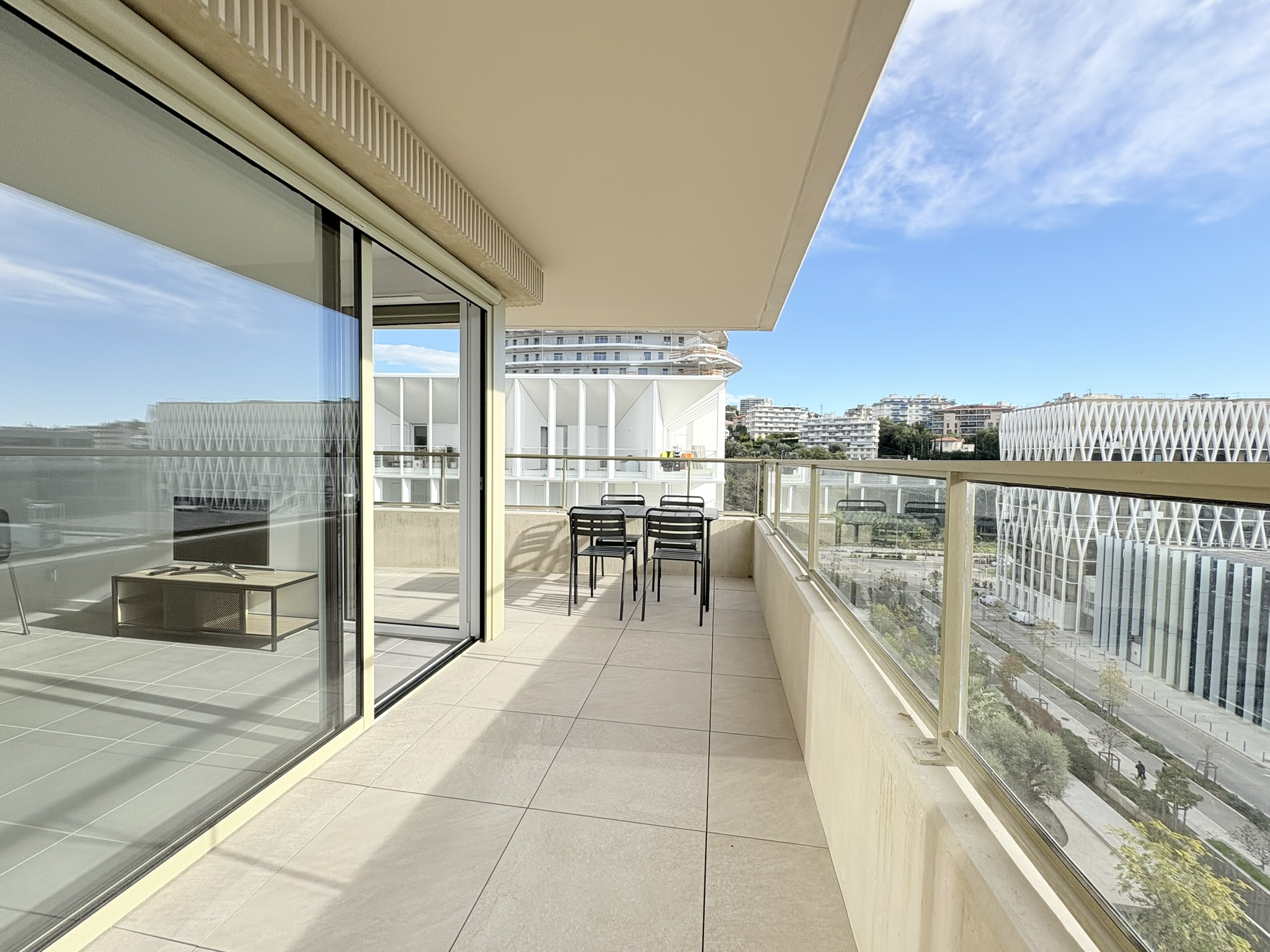 Secteur NICE OUEST - Venez découvrir ce magnifique appartement meublé de trois pièces, idéalement situé dans le très apprécié quartier de Nice Ouest, à quelques pas du tramway et avec un accès rapide à l’autoroute. Niché au 8ᵉ étage d’une résidence neuve et sécurisée, il offre un cadre de vie moderne, confortable et baigné de lumière. Dès l’entrée, un vaste hall équipé d’un grand placard vous accueille, créant une atmosphère pratique et accueillante. L’appartement se compose de deux belles chambres soigneusement aménagées, ainsi que d’une salle d’eau contemporaine équipée d’un lave-linge. Les toilettes sont indépendantes. Le séjour spacieux s’ouvre sur une cuisine moderne entièrement équipée, parfaite pour ceux qui aiment cuisiner tout en profitant d’un espace convivial et chaleureux. La pièce de vie donne accès à une grande terrasse, véritable prolongement de l’appartement, où vous pourrez apprécier une vue dégagée ainsi qu’un léger aperçu mer, idéal pour se détendre et profiter du climat azuréen. La performance énergétique classée A de ce logement garantit de faibles consommations et une excellente isolation. Ce bien offre un emplacement stratégique, une résidence neuve, un intérieur parfaitement agencé et un confort moderne qui séduira aussi bien les actifs que les amoureux de la Côte d’Azur. Une opportunité rare à saisir ! Loyer CC 1350 euros dont 150 euros de provisions sur charges (provision pour eau chaude, climatisation, entretien parties communes) Dépôt de garantie : 2400 euros Honoraires d'agence TTC à la charge du locataire : 831,48 euros (639,60 euros + 191,88 euros pour l'EDL d'entrée)