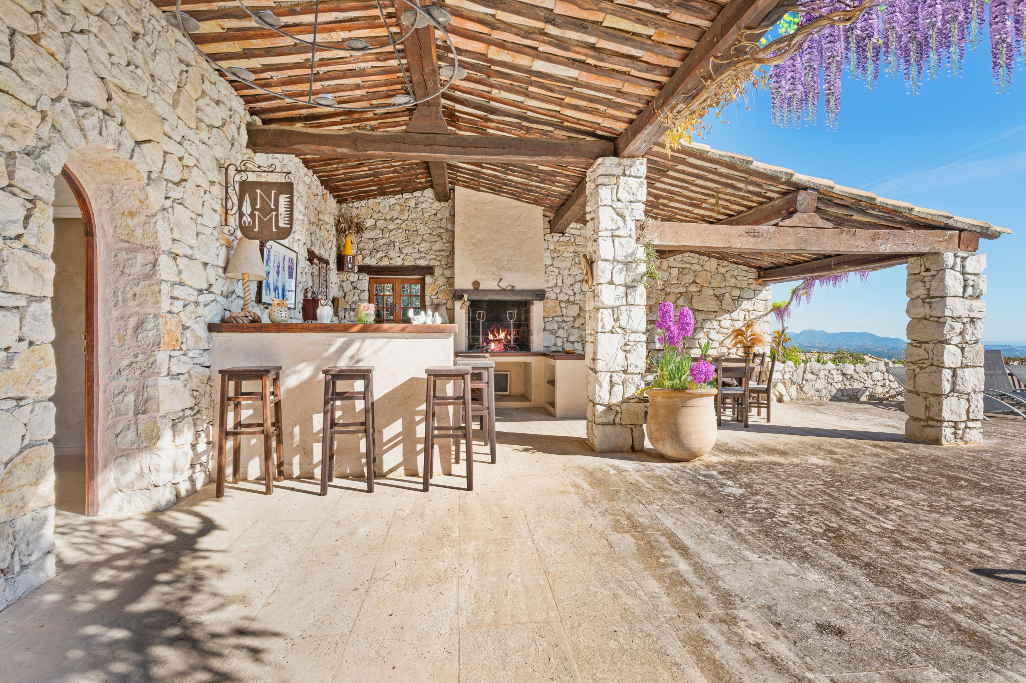 On vous présente une splendide bergerie en pierre, un bien rare dans le secteur du haut standing, offrant une atmosphère sereine et un décor naturel exceptionnel. Implantée au cœur d’un terrain de plus de 5 500 m², cette résidence se distingue par son caractère ancien préservé et par ses vues panoramiques à la fois sur la mer et sur le village. L’habitation totalise 9 pièces, dont 7 chambres. Elle comprend un hall d’entrée, une cuisine conviviale, une salle à manger accueillante et un grand salon doté d’une cheminée. Ce séjour donne accès à une vaste terrasse ensoleillée, parfaite pour profiter pleinement des belles soirées d’été. Le bâtiment principal comporte aussi trois chambres de plain-pied, permettant de recevoir famille et invités en toute simplicité. À l’étage, la suite principale constitue un espace privilégié, avec sa terrasse privative offrant un remarquable point de vue, ainsi qu’une seconde chambre équipée de sa propre salle d’eau.Pour un confort d’accueil supplémentaire, un appartement dédié aux invités ainsi qu’un studio indépendant complètent la propriété. Vous trouverez également une cave à vins ainsi qu’un garage spacieux permettant de stationner plusieurs véhicules. Située en position dominante au sein d’un quartier résidentiel recherché, la propriété bénéficie d’un calme absolu, tout en se trouvant à seulement 30 minutes de l’aéroport international de Nice. Les extérieurs sont tout aussi attrayants : une piscine, une cuisine d’été avec barbecue, plusieurs terrasses et un cadre verdoyant à proximité du village offrent un environnement idéal pour partager des moments chaleureux en famille ou entre amis.Un rafraîchissement général est à prévoir afin de profiter pleinement du potentiel de cette demeure au charme provençal intemporel.