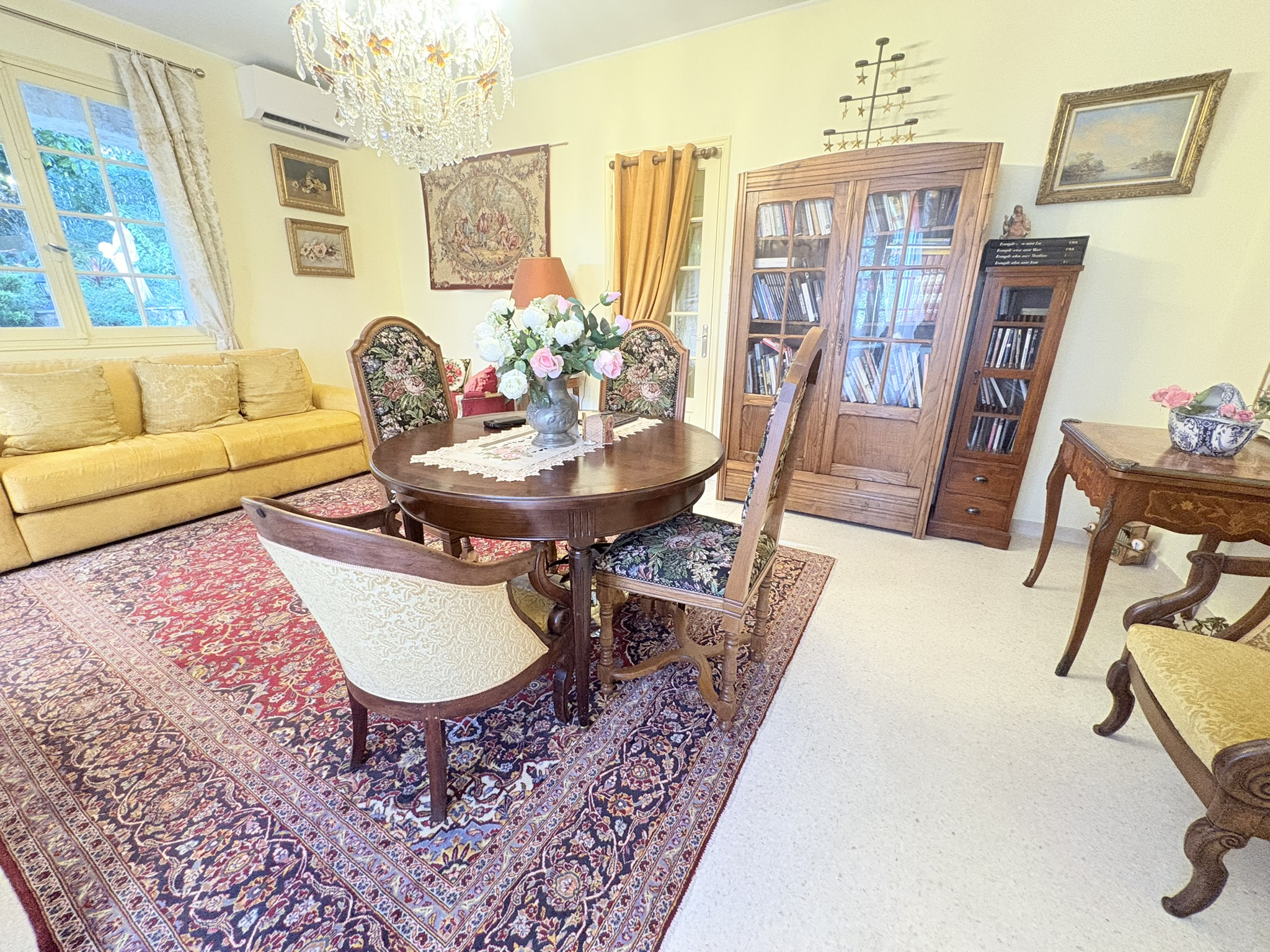 A vence, à quelques minutes du centre, Cette villa provencale de belle facture vous séduira pour ses nombreux atouts.Un jardin, trés joliment arboré laissant place à de belles sculptures. Sur deux niveaux, elle se compose de deux appartements. En rez de chausée, nous trouvons un séjour, salle à manger, trois chambres avec placards - dressing. une salle d'eau, un wc indépendant. Une belle terrasse couverte, nous permet de profiter pleinement du jardin. En rez de jardin : Une belle entrée dessert les piècfes à vivre à savoir un salon cosi, une salle à manger avec son élégante cheminée, une cuisine indépendante entièrement équipée. L'espace nuit se compose d'une belle chambre avec ses placards organisés, une salle d'eau et un wc indépendant. Une terrasse Cet ensemble se compléte au sous sol, par un garage double avec rangement important, une cave, un local technique avec une dépendance.