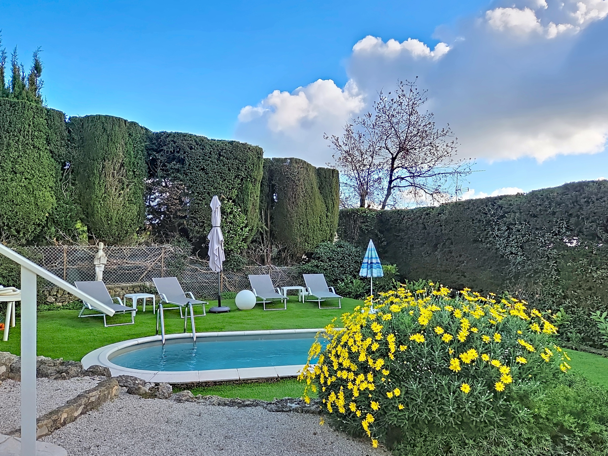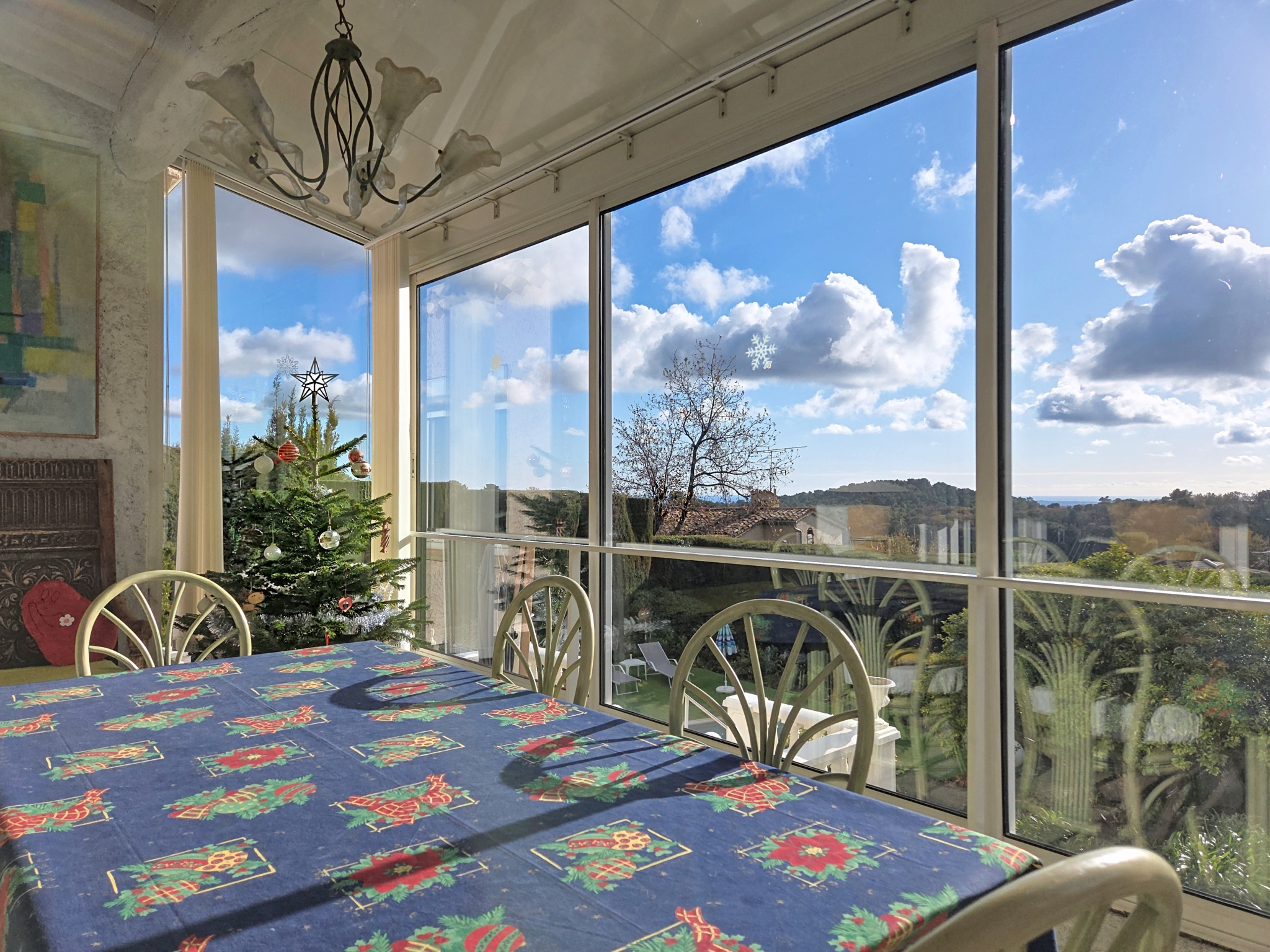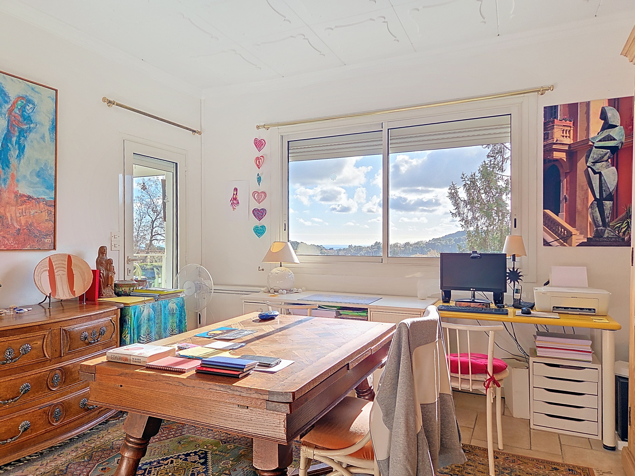 Vence Située dans le quartier trés recherche de l'Ara, villa comprenant de plain-pied une entrée, un salon lumineux prolongé d'une véranda-salle à manger, cuisine équipée avec office, 2 chambres , bureau , salle de bains, salle d'eau-WC et WC indépendant.