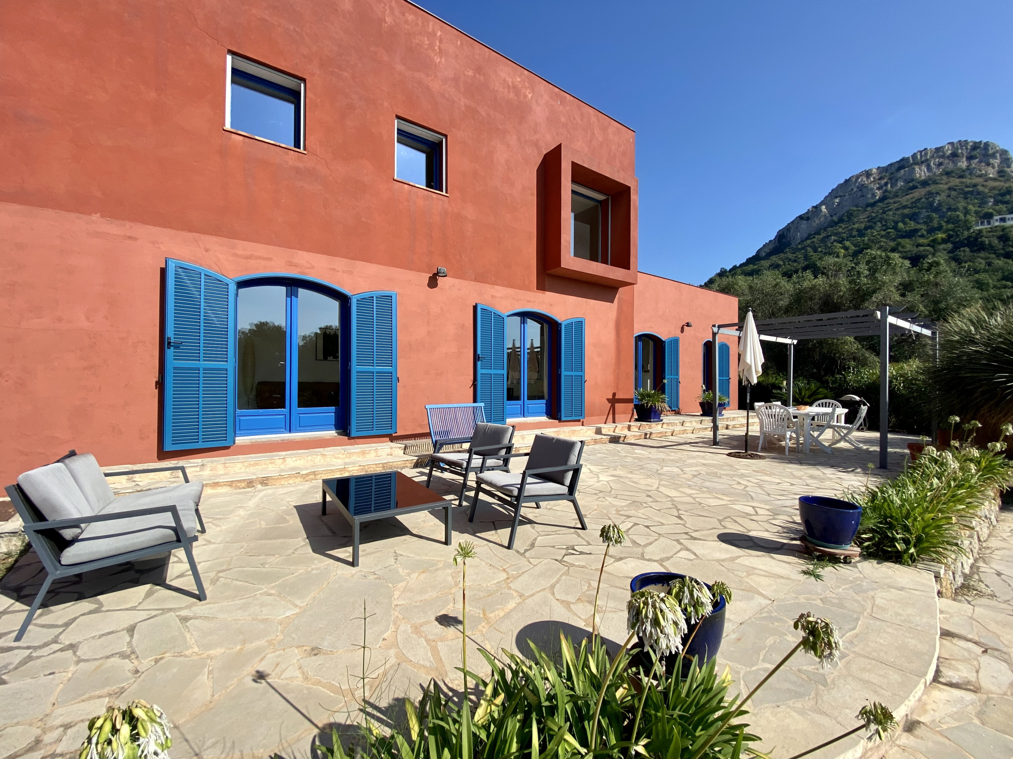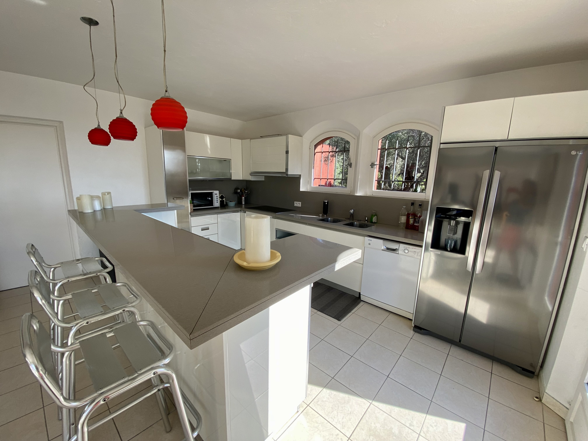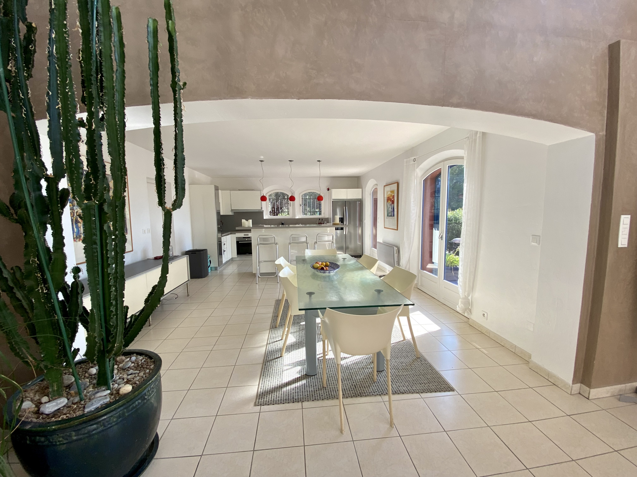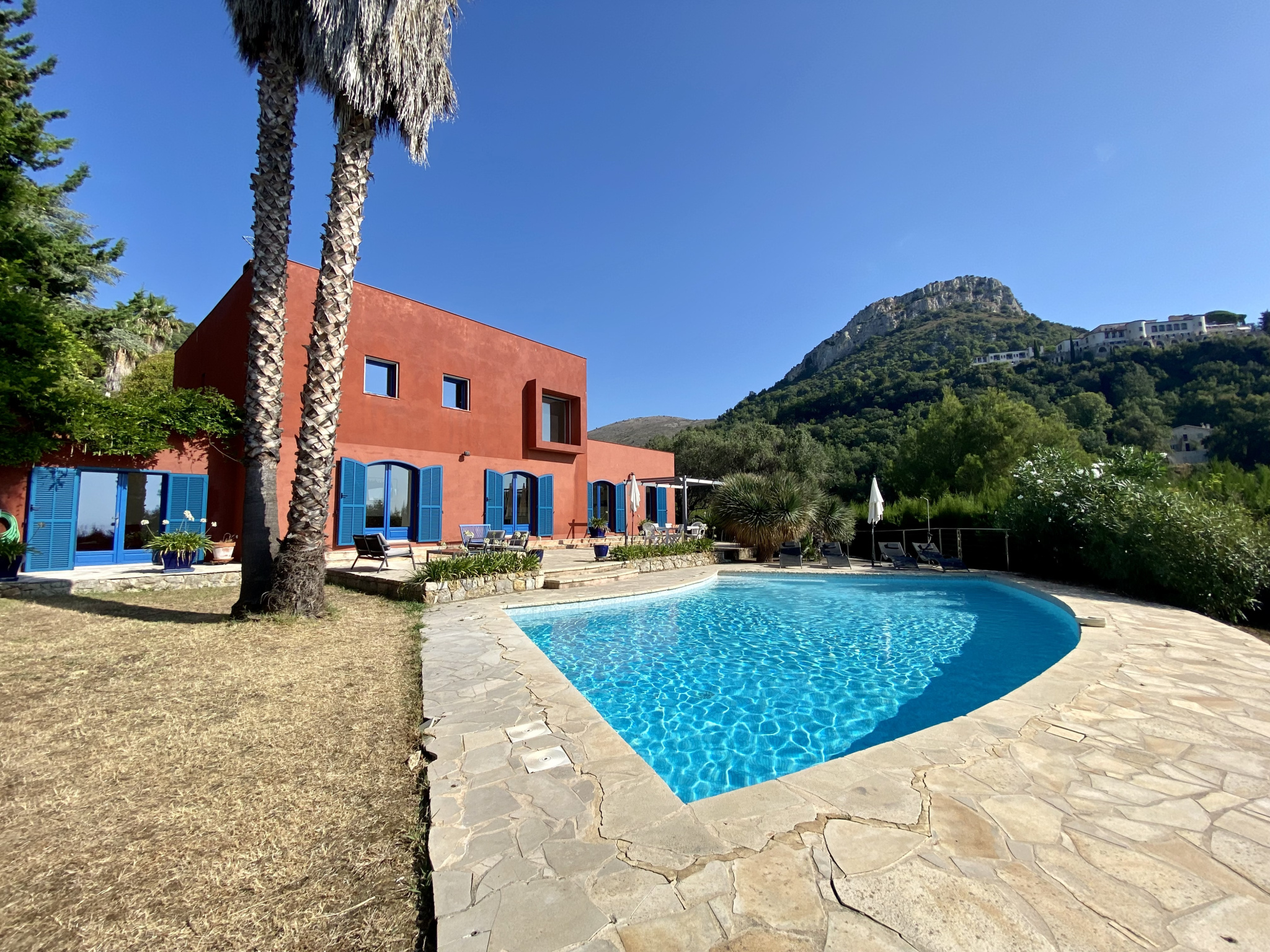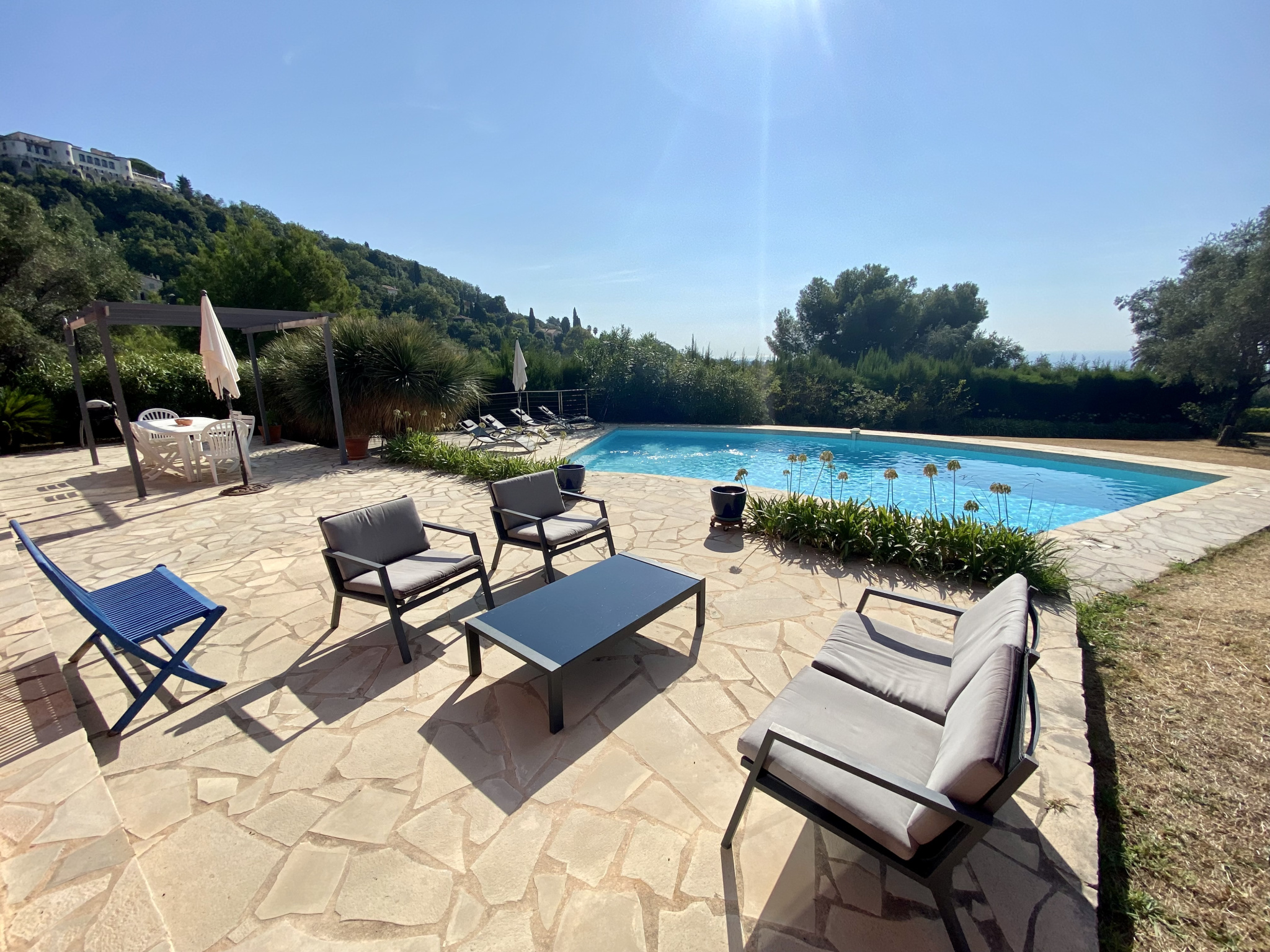 À Vence, à seulement 1 km du centre-ville, découvrez cette superbe villa d’architecte de 230 m², implantée sur un magnifique terrain plat de 1 700 m² agrémenté d’oliviers et d’une piscine. La villa s’organise principalement de plain-pied. Le rez-de-chaussée offre une entrée avec rangements, des WC invités, un vaste séjour de 62 m² sublimé par une cheminée suspendue, ainsi qu’une cuisine entièrement équipée avec un bel espace repas. Un bureau complète cet espace de vie. Un dégagement dessert une chambre avec salle de bains, une buanderie et un cellier. Toujours de plain-pied, la suite parentale d’environ 30 m² dispose d’un dressing, d’une salle de bains et de WC privatifs. À l’étage, une élégante passerelle mène à trois chambres, chacune avec placards, une salle d’eau et des WC indépendants. Le niveau accueille également une exceptionnelle terrasse en bois de 65 m² en roof-top, offrant de superbes vues sur les montagnes et la mer. À l’extérieur, les pièces de vie s’ouvrent sur une grande terrasse et une belle piscine, prolongées par le jardin paysager planté d’oliviers centenaires. En annexes, la propriété dispose d’un garage pouvant accueillir aisément deux véhicules ainsi que d’une cave de 29 m². Un stationnement extérieur est également possible pour plusieurs véhicules. Les informations sur les risques auxquels ce bien est exposé sont disponibles sur le site Géorisques : www.georisques.gouv.fr