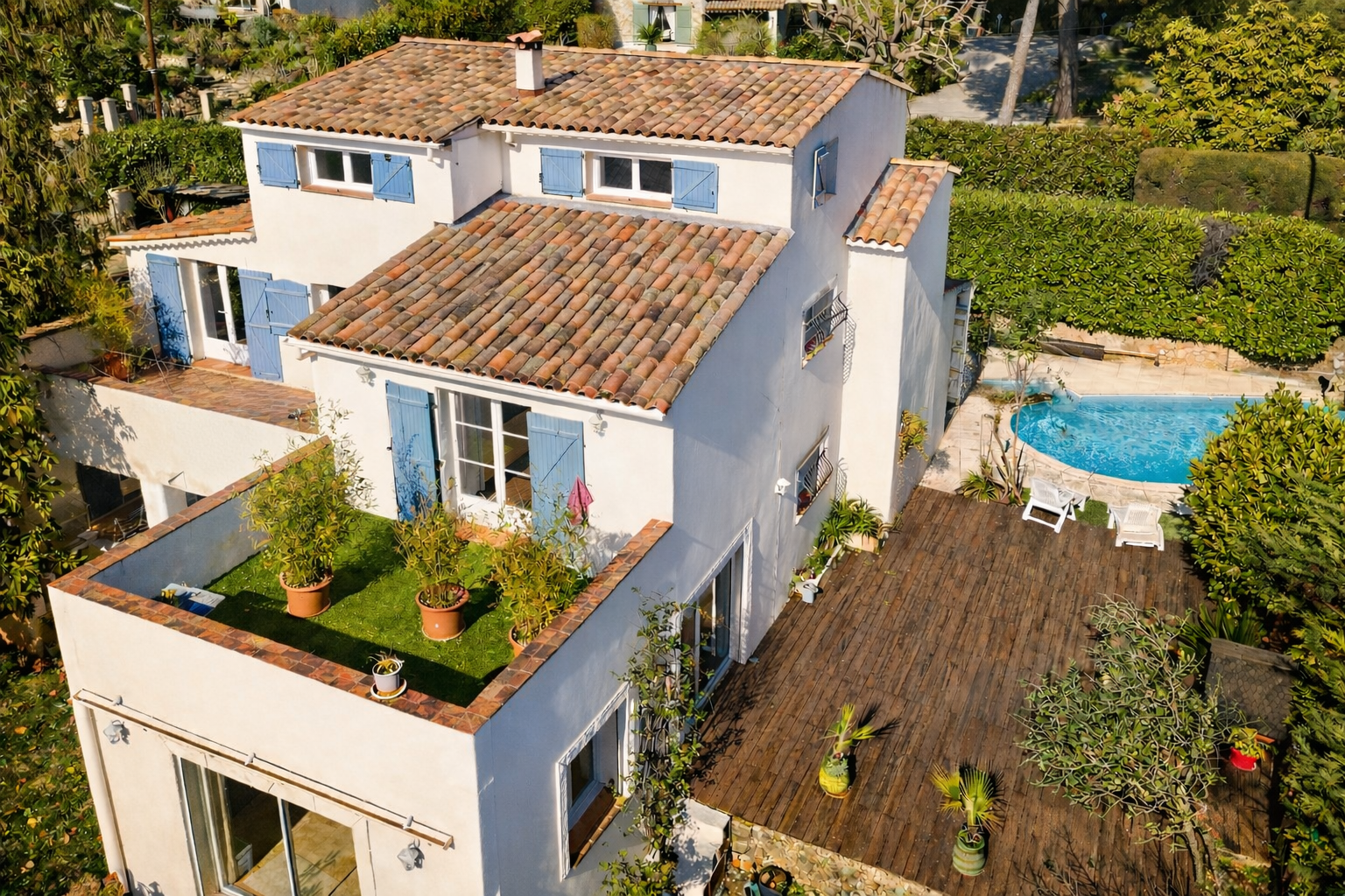 À VENDRE – Superbe villa provençale 7 chambres – 320 m² – Terrain 1340 m² – Calme absolu, située dans le très prisé quartier des Gardettes, à quelques minutes à pied du charmant village de Saint-Paul-de-Vence, cette magnifique villa provençale de 320 m² habitables vous séduira par son authenticité, ses volumes généreux et son environnement paisible. Édifiée sur un terrain arboré de 1340 m², cette propriété de construction traditionnelle de qualité se déploie sur trois niveau et présente un double potentiel particulièrement séduisant : 1- Projet à deux familles : grâce à sa configuration sur trois niveaux, la propriété peut être pensée comme deux appartements distincts, offrant à deux familles la possibilité de vivre sous le même toit tout en conservant leur indépendance. 2- Une grande maison familiale : avec 7 chambres et de vastes pièces de vie ! À l’extérieur, profitez pleinement de la douceur de vivre méditerranéenne avec : une piscine chauffée, une cuisine d’été toute équipée avec four à pizza, idéale pour vos soirées entre amis ou en famille. Un véritable havre de paix à deux pas de toutes les commodités, dans l’un des secteurs les plus recherchés de la région. Un bien rare à découvrir sans tarder ! Contactez-nous dès maintenant pour organiser une visite.