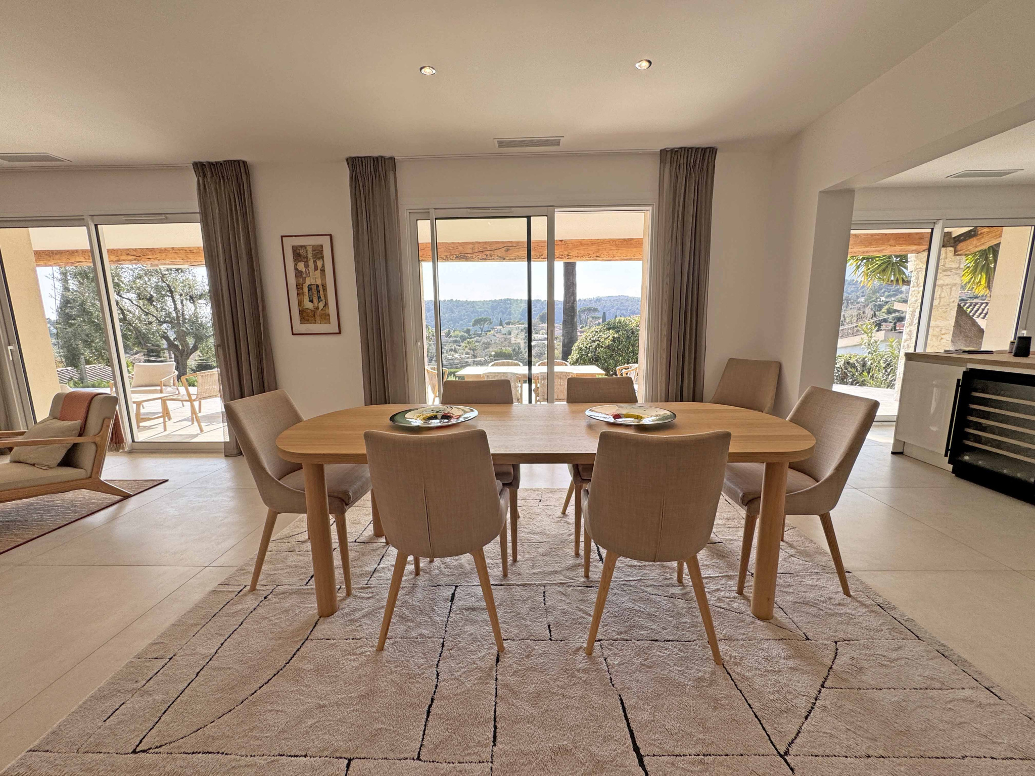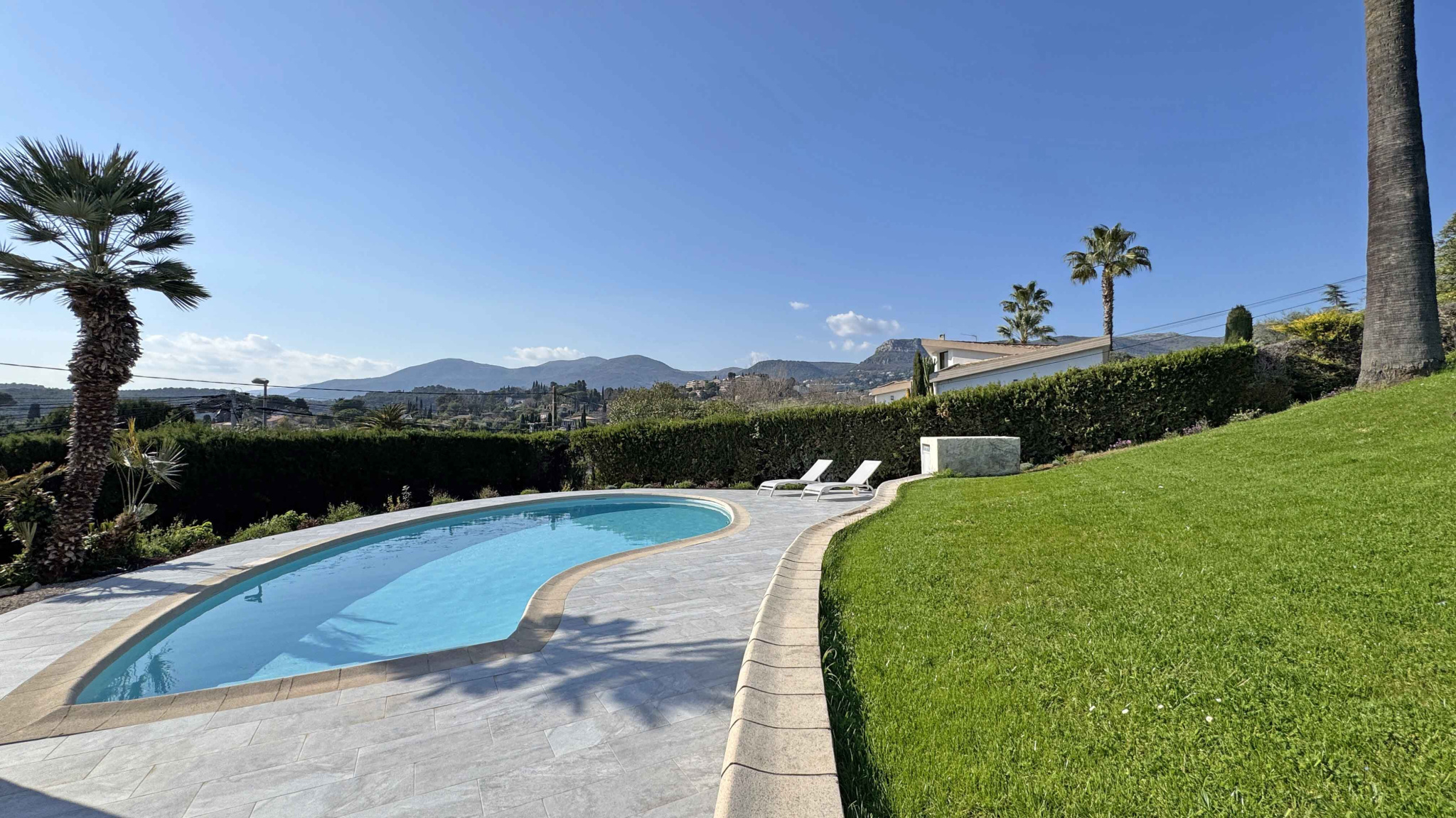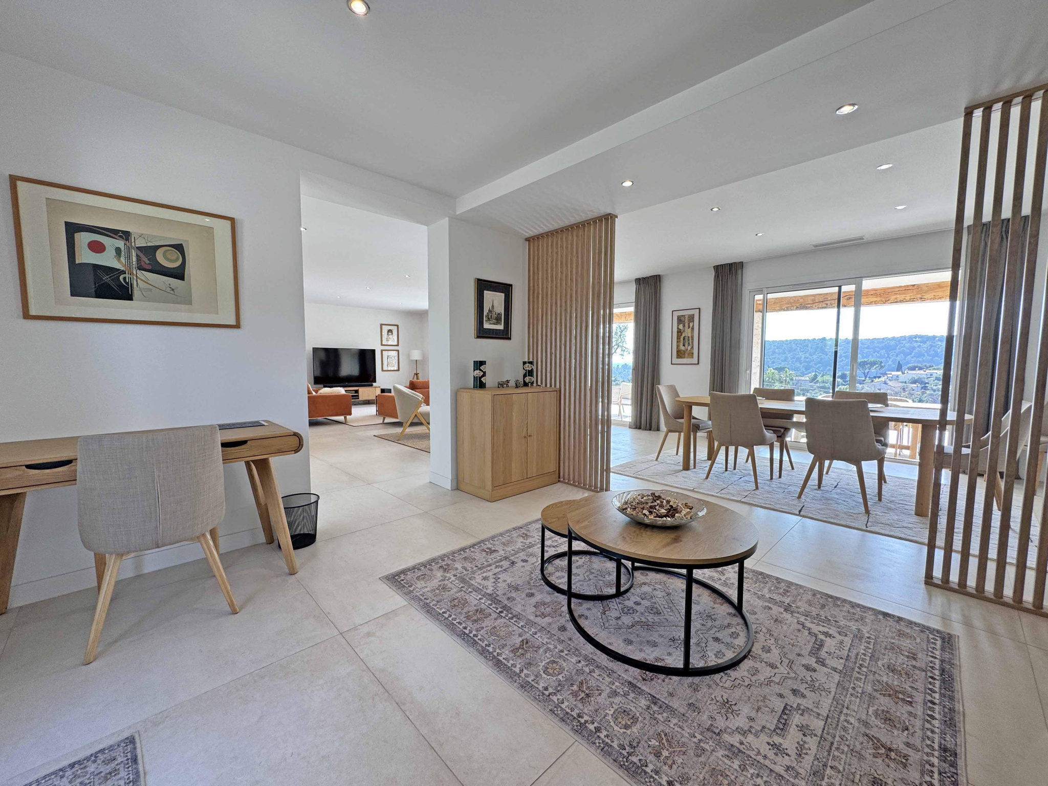 OFFRE ACCEPTEE - Située dans un quartier calme au Sud de Vence, très belle villa récemment rénovée avec des prestations de qualité et bénéficiant d'une très belle vue dégagée. Le niveau principal de plain-pied, d’environ 190 m², s’ouvre sur une jolie entrée menant à un spacieux espace de vie entièrement ouvert comprenant un salon, une salle à manger et une cuisine ouverte entièrement équipée. Toujours de plain-pied, la chambre principale avec salle de douches et dressing aménagé, une chambre avec salle de bains, une chambre avec bureau et salle de douches, et une cave à vins et une buanderie Un appartement indépendant comprenant un salon avec cuisine ainsi que deux chambres avec pour chacune une salle de douches. Jardin paysager de 2.120 m2 avec piscines, terrasses et abri voitures. Les informations sur les risques auxquels ce bien est exposé sont disponibles sur le site Géorisques : www.georisques.gouv.fr