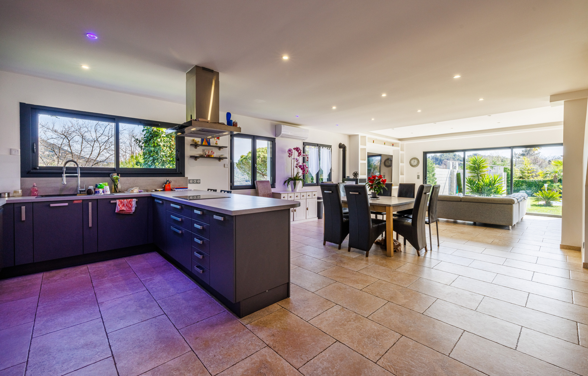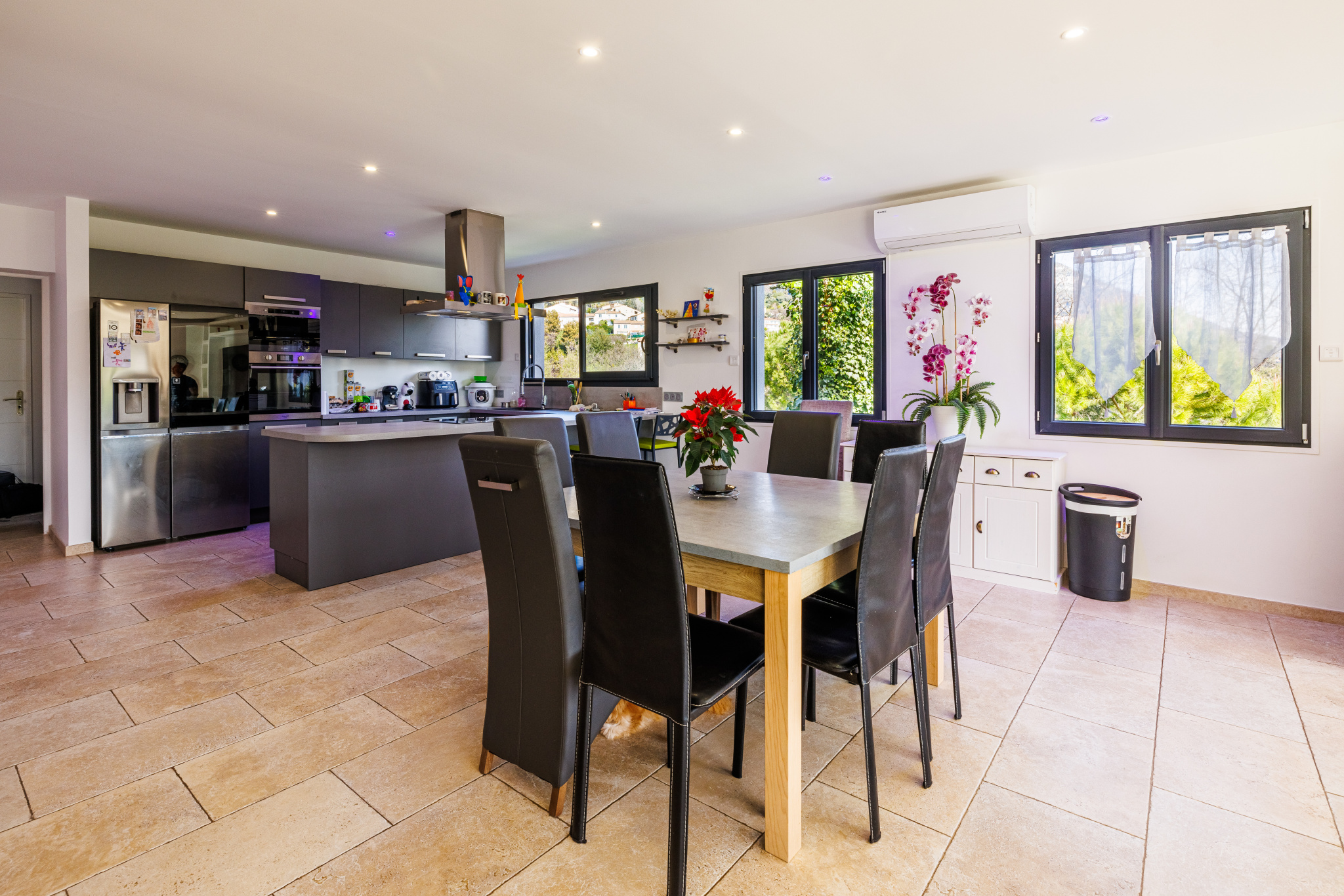 Superbe villa contemporaine construite en 2021, située dans un environnement calme et agréable à Vence. D'une surface d'environ 160 m², cette villa se compose de la manière suivante : - Niveau 0 : Belle entrée donnant directement sur une cuisine américaine avec un vaste espace de vie réunissant salon et salle à manger. Ce niveau dispose également d'un WC invités, d'une buanderie, d'une suite parentale avec salle de douche et d'une chambre. - Niveau 1 : Vous retrouverez 3 belles chambres avec une salle de douche/WC L'extérieur séduit par sa grande terrasse, son jardin paysager et sa piscine, parfaits pour des moments de détente. Un garage ainsi que deux places de stationnement extérieures complètent ce bien. L'avis de l'agence : « Vous serez rapidement séduits par cette villa contemporaine et l'atmosphère qui s'en dégage. Les volumes permettent de profiter pleinement de cette maison en famille avec un entretien minimum »
